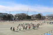 学校の様子を紹介57 ●12月18日(木)【3年生が学年レクを開催】 暖かな陽気のもと、校庭で3年生が学年レクを開催しました。ドロ刑(刑ドロ?)を行った後、部活動ごとに対抗リレーを行いました。久しぶりにそれぞれが、各部のユニフォーム等に袖を通して競いました。顧問の先生とボールを打ちながら走る女子テニス部や、竹刀を振りながら走る剣道部、そして通学鞄をバトン替わりに走る帰宅部等の姿が見られました。三ケ島中学校は、「楽しい学校」です。