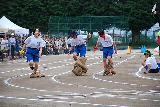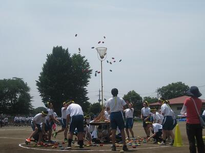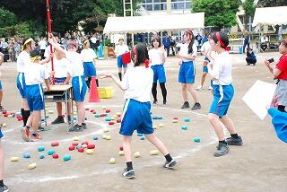 大縄跳び、玉入れ、クラス全員リレー等々。玉入れでは、会場全体で「チェッコリーダンス」を踊る姿が見られました。微笑ましいものですね。