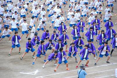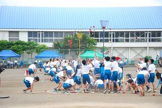 午後は保護者参加の新競技「大玉ころがし」がありました。保護者の方にとっても「楽しい学校」であって欲しいものです。最後は、全校生徒で「よっちょれ」を踊りました。クラスを超えた一体感は、この上ない充実です。