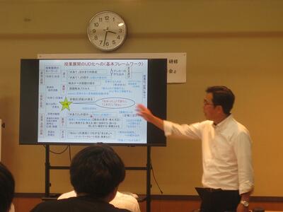 この日の放課後は、先生たちの研修会(勉強会)です。生徒の皆さんが分かりやすく、力のつく授業を目指していきます。今年度は授業に「UD(ユニバーサルデザイン)の視点に立った授業づくり」をテーマに、大学の先生より年数回指導を受けながら、取り組んでいきます。