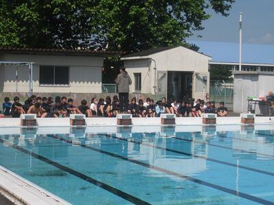 急激に暑くなった今週、いよいよ水泳の授業が始まりました。1955年に起きた沈没事故により泳ぎ方を知らない多数の子供たちが犠牲になったことを契機に、水泳授業が始まったと言われています。今年度は「着衣泳(服を着たまま泳ぐこと)」を単元のゴールとしています。