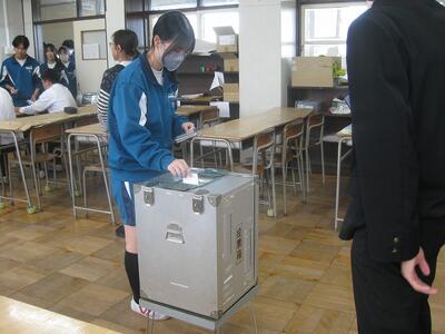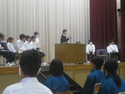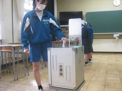この日は、生徒会本部役員選挙の立ち合い演説会が行われ、その後投票が行われました。これは、生徒会細則2、第4条に基づいて行われています。選挙は重要な仕組みであり、民主主義の根幹です。皆さんには、このようなことを体験を通して、学んでいって欲しいと思います。中学校を卒業した3年後、18歳になると選挙権を持つことになります。ぜひ自分事として捉えてほしいものです。