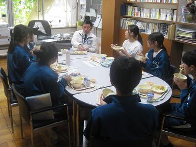 先日の生徒会本部役員の任命式を受け、本部役員と校長先生で、給食の時間を利用したランチミーティングを開始しました。今後、週1回を目安に定期的に開催する予定です。三ケ島中学校が、より「楽しい学校」となるように皆さんとの対話を通じていきたいものです。