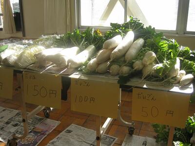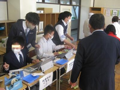 この日は、5組で販売学習を開催しました。学校ファームで育てた野菜や、木工作品のしおりや額、手芸のストラップ等の販売がありました。また、今回はハンドメイド部で作成した作品も販売しました。お隣の小学生も少し緊張した面持ちながら、お小遣いを持って買い物に来ました。