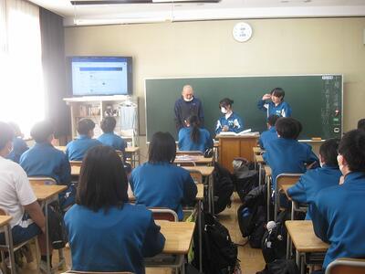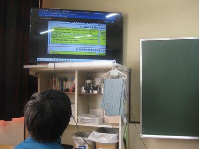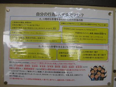 この日の朝は、オンラインで生徒会本部が中心となっていじめ撲滅に向けた取組がありました。そもそも「いじめ」とは、どんな事をさすのか?といったことについても説明がありました。