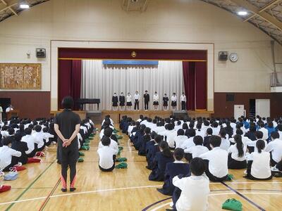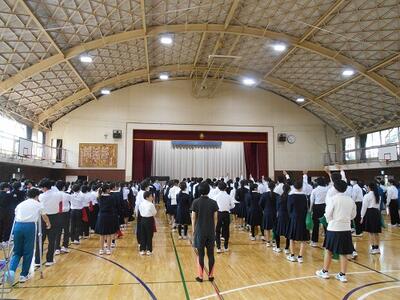 【学校の様子9】生徒会朝会 投稿: mikajimatyu (08:48) 4月21日(火)生徒会朝会がありました。 各学年の学級長、委員会の委員長が それぞれ目標を伝えました。 学校をよりよくするために主体的に活動してくれることを期待しています。