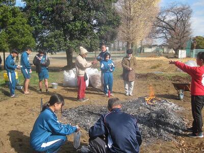 この日は、剣道部で焼き芋を作りました。たくさんの落ち葉や枯れ枝を燃やして焼いたサツマイモを、剣道部の皆さんでご近所さんにおすそ分けをしました。とても喜んでいただき、心も身体も暖かくなった一日でした。